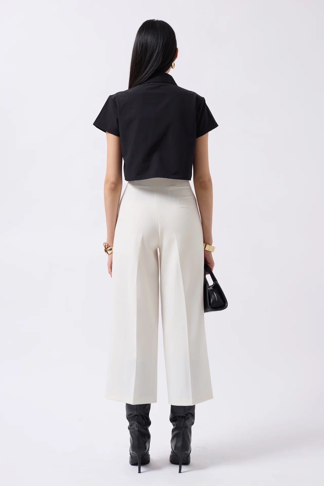 Double Flat Pocket, Pocket Bow Detail, Short Sleeve Crop Shirt